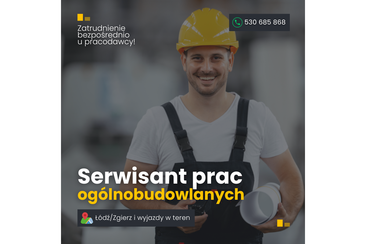 Osoby zainteresowane proszę o przesłanie CV na adres ig@pracownicybudowlani.pl lub kontakt telefoniczny – 530 685 868. Nie odbieram? Wyślij sms, oddzwonię!