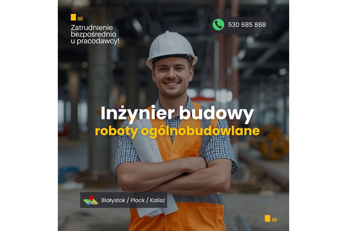 Osoby zainteresowane proszę o przesłanie CV na adres ig@pracownicybudowlani.pl lub kontakt telefoniczny – 530 685 868. Nie odbieram? Wyślij SMS, oddzwonię!