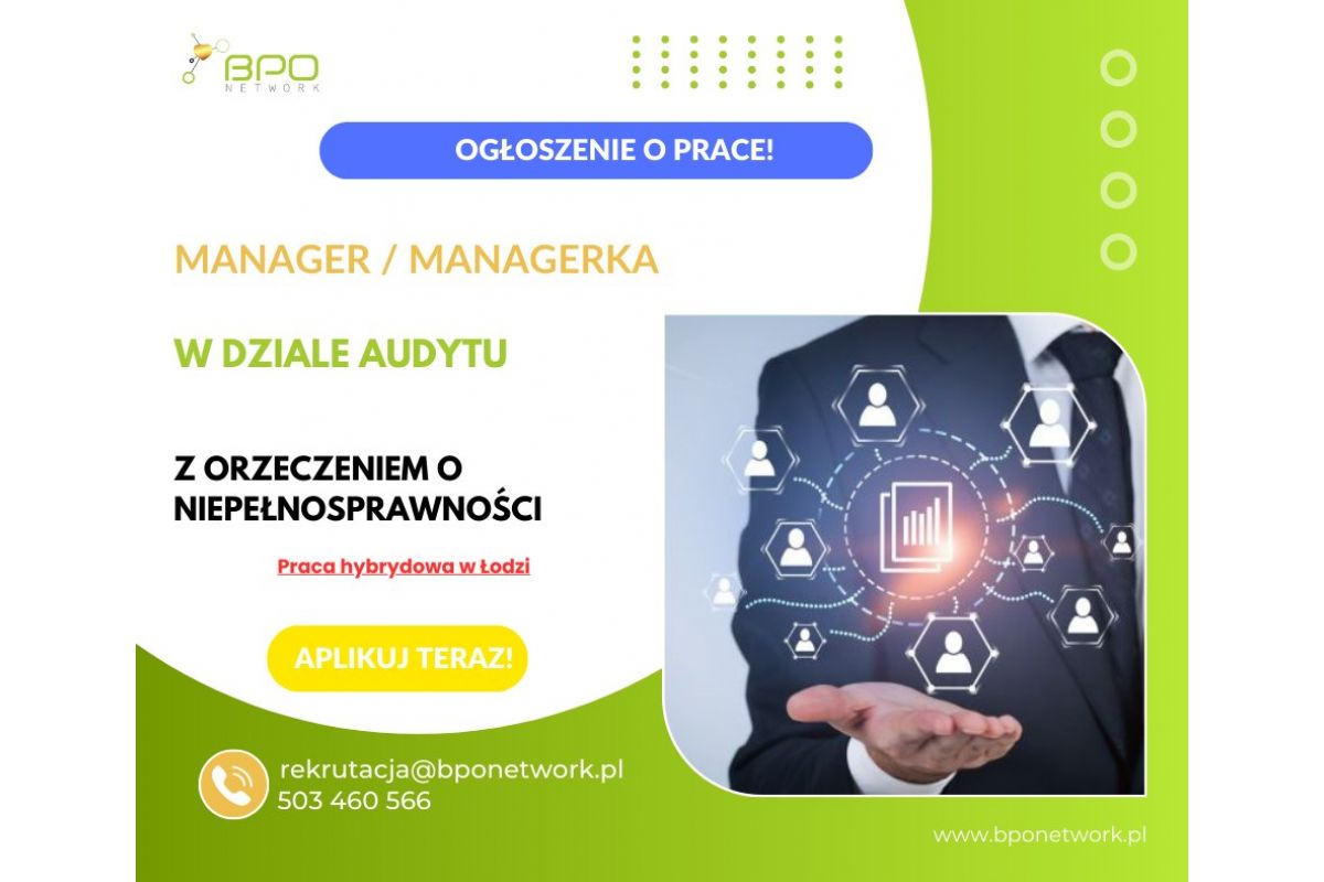 Manager/ka w dziale audytu z orzeczeniem o niepełnosprawności – praca hybrydowa w Łodzi