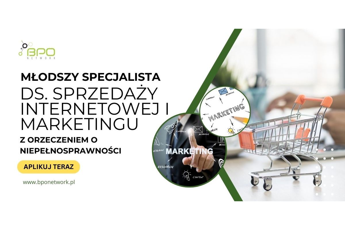 Młodszy Specjalista ds. sprzedaży internetowej i marketingu z orzeczeniem o niepełnosprawności - praca w stacjonarna