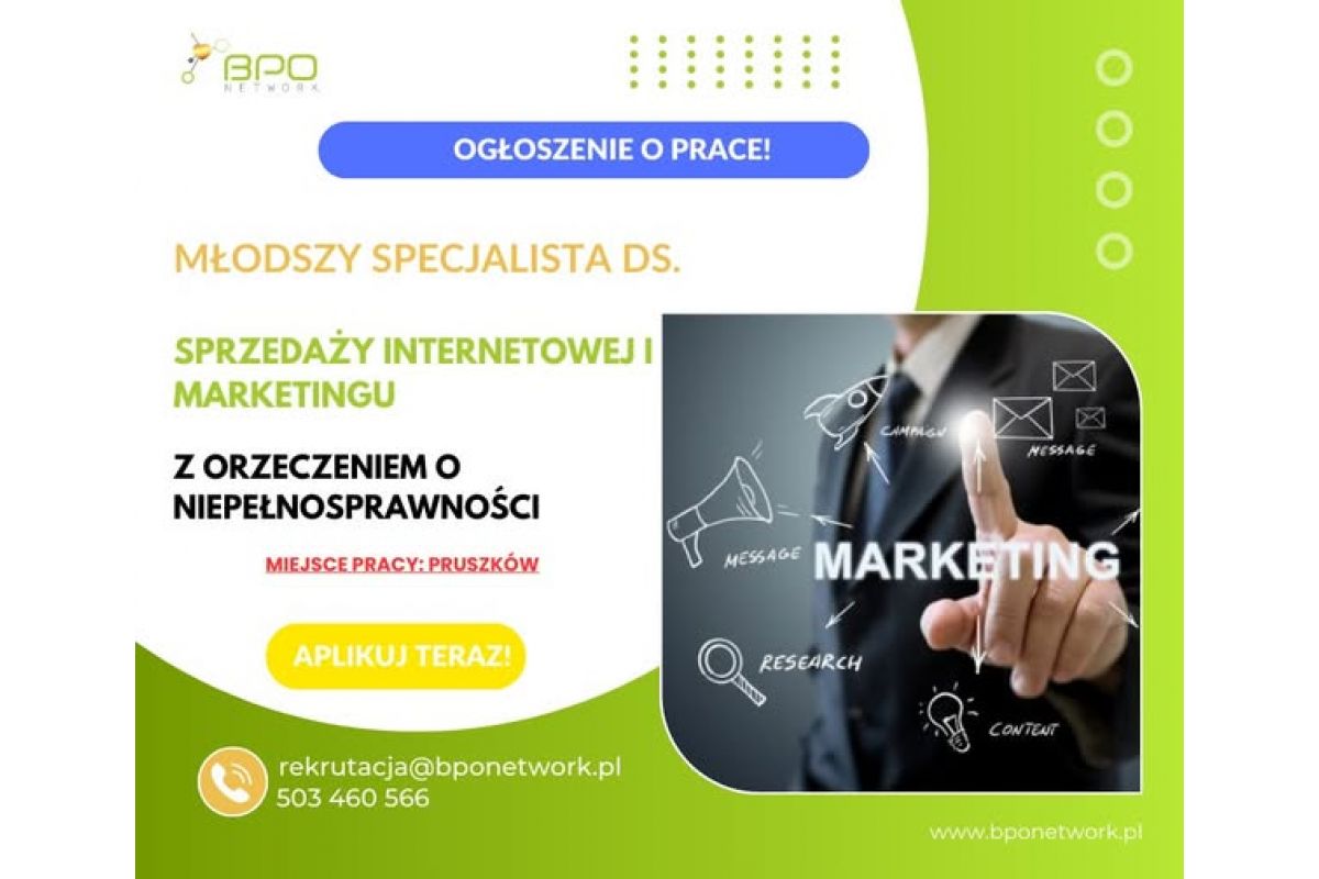 Młodszy Specjalista ds. sprzedaży internetowej i marketingu z orzeczeniem o niepełnosprawności - praca stacjonarna w Pruszkowie