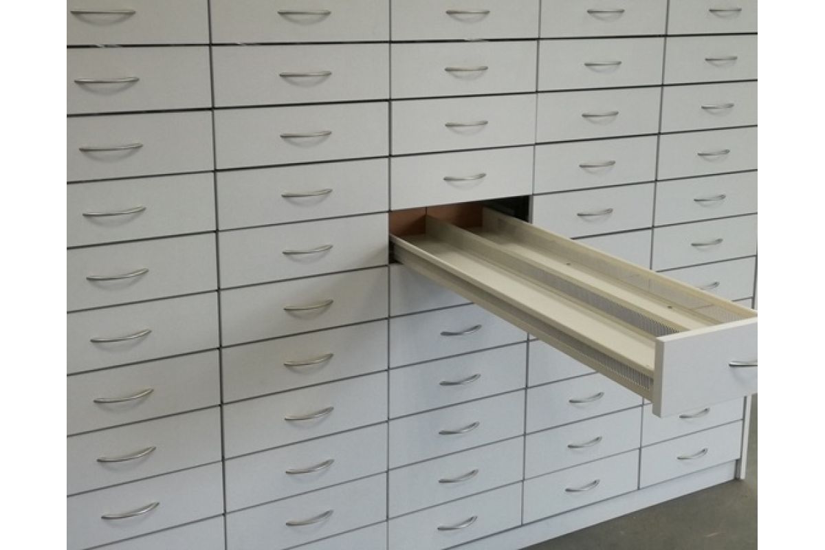 W pionie jest około 15-17 szuflad na łożyskach, szuflada wyposażona jest w przegrody i boczne opisy. Szuflady wystąpuja w głbokościach 0d 100-120cm oraz szerokości od 39, 5 do 42, 5cm.