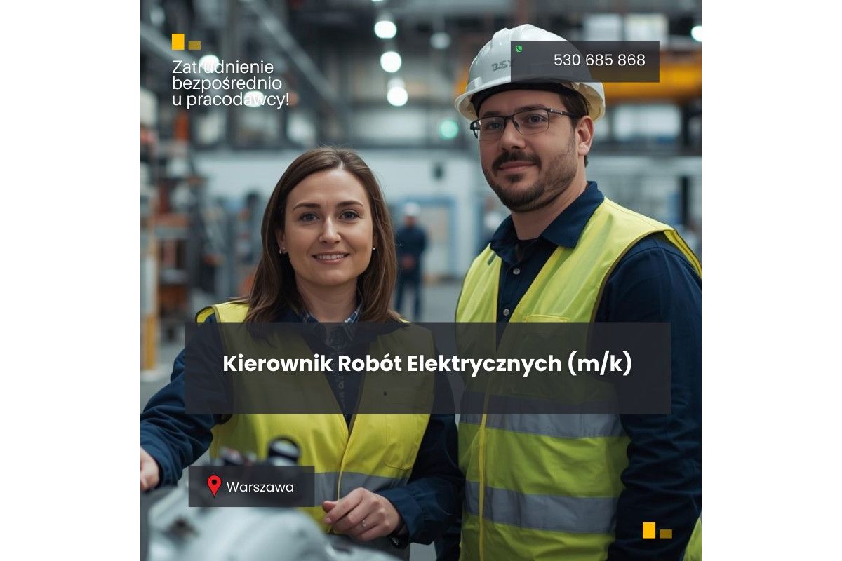 • Doświadczenie na stanowisku Kierownika Robót Elektrycznych przy realizacji obiektów kubaturowych,